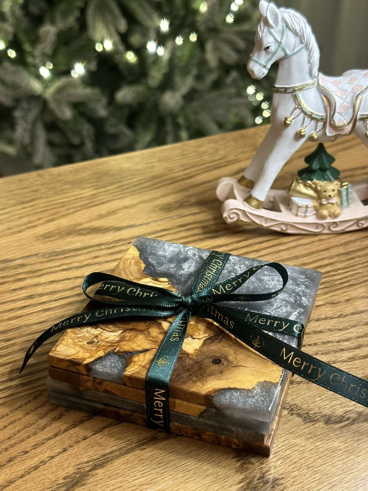 Χειροποίητα σουβέρ από διαλεγμένο ξύλο ελιάς & υγρό γυαλί σε 4 διαφορετικά σχέδια!